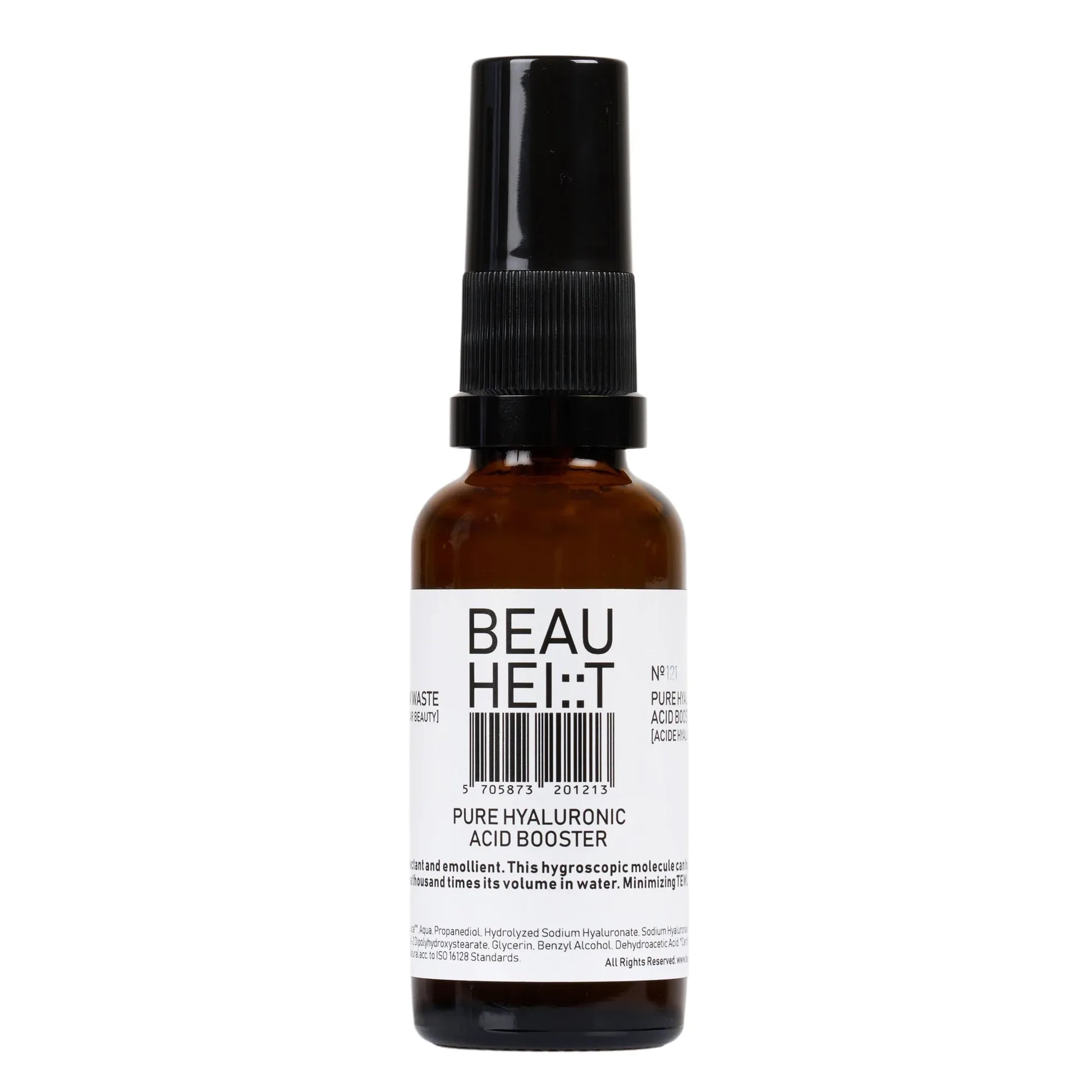 PURE HYALURONIC ACID BOOSTER enthält eine große Menge Hyaluronsäure (HA) in verschiedenen Größen und hilft der Haut so, ihre Feuchtigkeit und Elastizität zu bewahren. Es hilft auch, Falten und feine Linien zu reduzieren. HA kann bis zum 1.000-fachen seines Molekulargewichts an Wasser binden [src] . Hyaluronsäure dringt in die Haut ein und bindet Wasser an die Hautzellen, wodurch alle Hautschichten mit wertvoller, verjüngender Feuchtigkeit versorgt werden. Sie wirkt wie ein Feuchtigkeitsmagnet und sorgt für intensive Feuchtigkeitsversorgung und Straffheit der Haut, wodurch der TEWL (Wasserverlust durch die Haut) minimiert wird. Booster № 121 hilft, die Feuchtigkeitsbarriere der Haut wiederherzustellen und sorgt für eine insgesamt stärkere und glattere Haut.