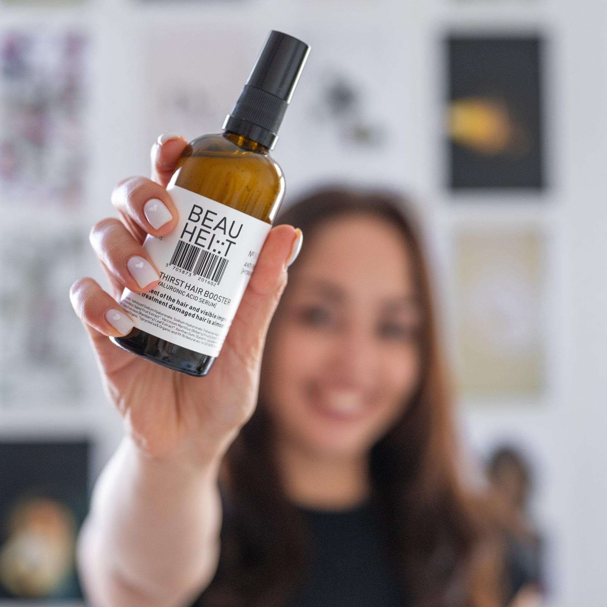 Restore and hydrate dry, damaged hair with Anti-Thirst Hair Booster, specially formulated to rebalance moisture and enhance hair’s shine and elasticity. Infused with hyaluronic acid, this booster acts like a moisture sponge, absorbing and locking in hydration to rehydrate hair within hours of application.