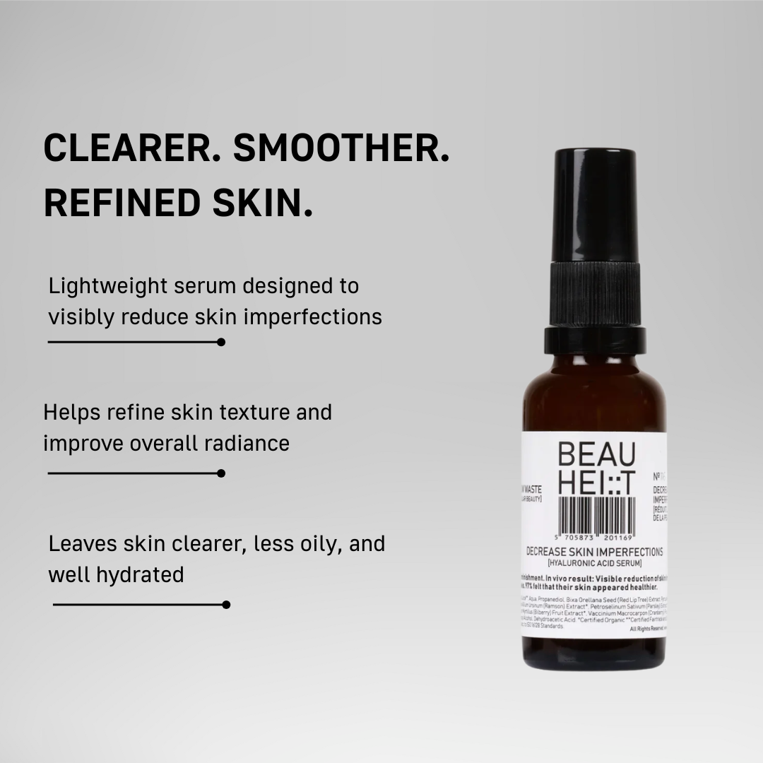 DECREASE SKIN IMPERFECTIONS is perfect for oily and blemish-prone skin, helping refine skin texture, visibly reduce imperfections, tighten pores, and balance oil production, leaving the skin clearer, more glowing, and hydrated.