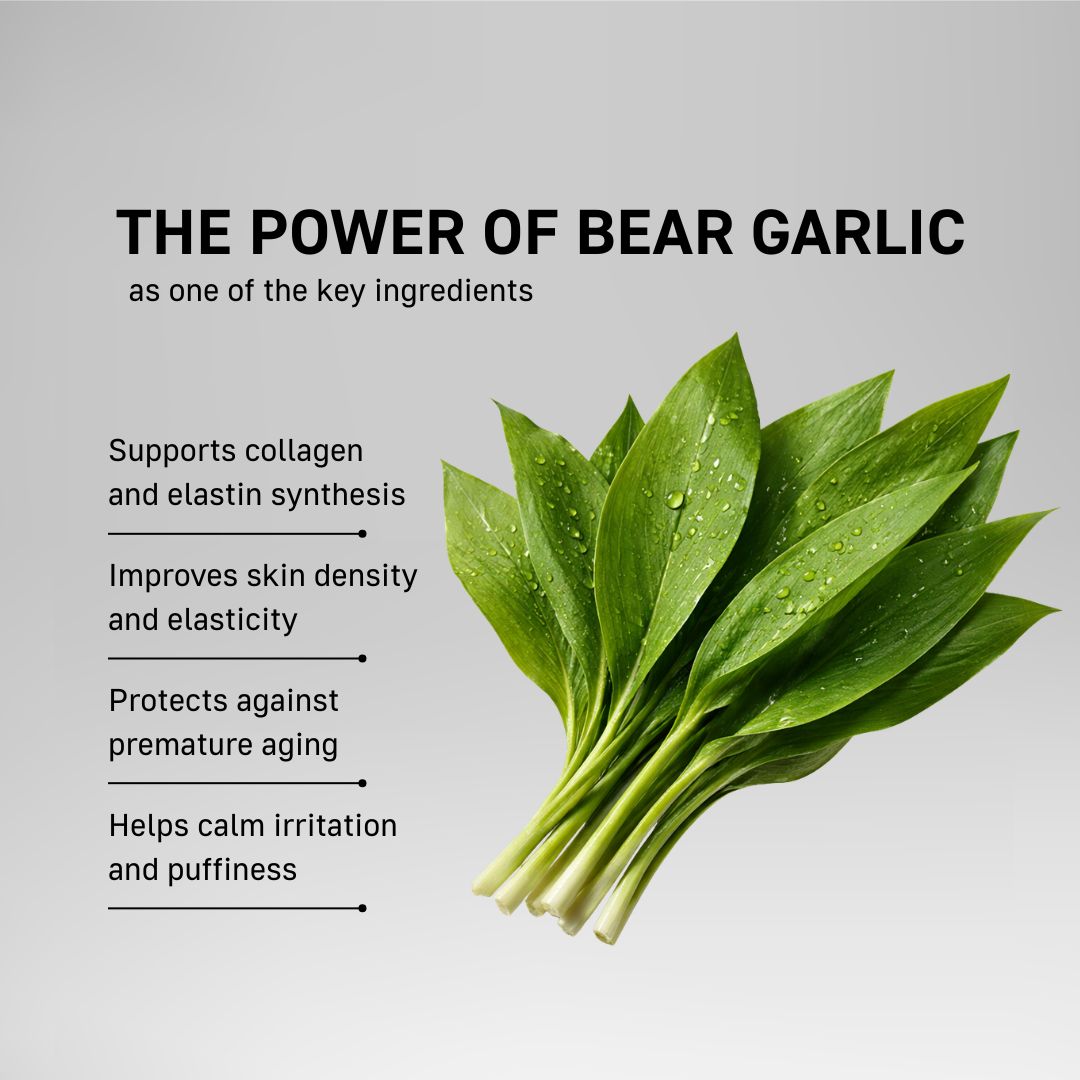 Bear Garlic is rich in carotenoids which have been shown to stimulate fibroblasts to synthesize collagen and elastin, smoothing deep wrinkles and crow’s feet around the eyes, and mimic wrinkles. Carotenoids also increase skin density, elasticity, and firmness.