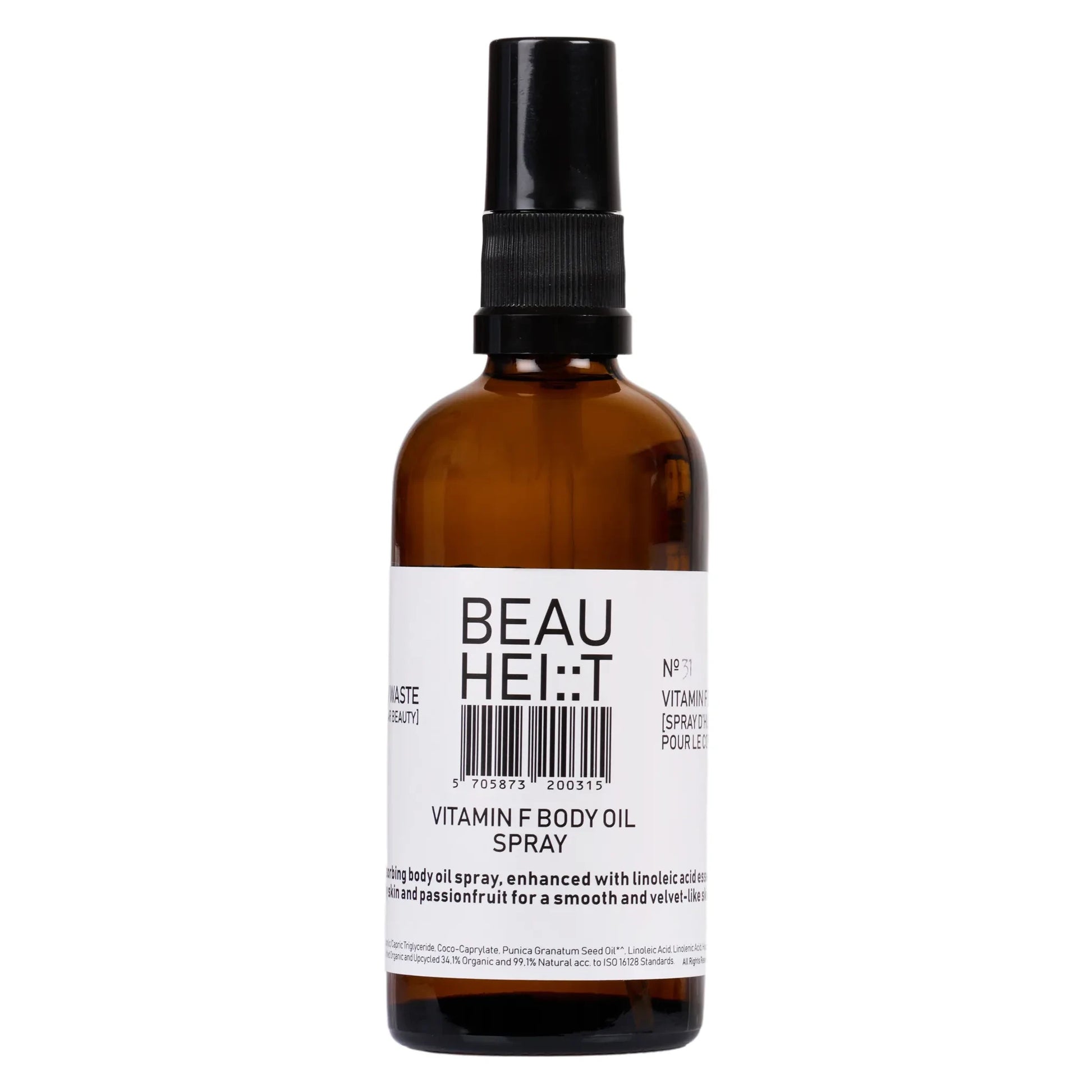Havtornsolja erbjuder en uppsjö av hudvårdsfördelar. Rik på vitamin A i form av karotenoider, främjar hudens regenerering och minskar rynkor och hjälper till att behålla en ungdomlig hy. Dess höga vitamin C-innehåll bidrar till antioxidativ förmåga och hjälper till att skydda huden mot de oönskade effekterna av daglig solexponering. Dessutom innehåller havtorn en myriad av fenolsyror, som hjälper till att undertrycka utvecklingen av oönskad mikroflora på din hud. Havtornsolja är effektiv för att motverka torr, irriterad och grov hud, erbjuder lugnande lindring och skyddar din huds totala vitalitet. Vitamin F Body Oil Spray ger huden en vacker gyllene lyster på grund av innehållet av Havtornsolja.