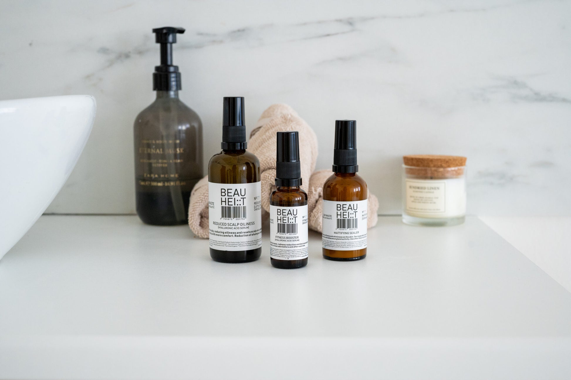 Grymhetsfri – vegan – ekologisk – återvunnen – hållbar – koldioxidvänlig – återvunnen flaska – 100 % grön energi – enligt ISO 16128-standarder – labbtillverkad i Danmark.